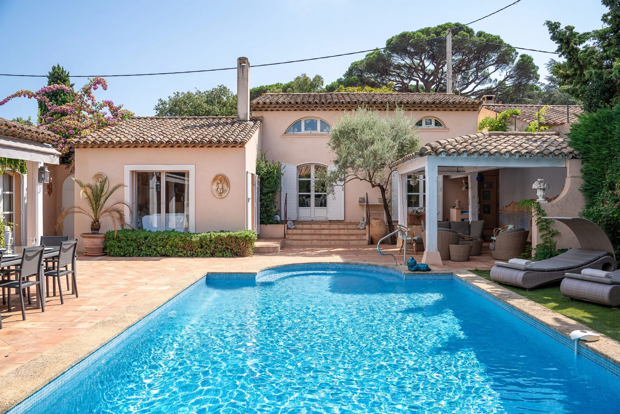Cette villa allie charme provençal et confort moderne, offrant un cadre idyllique pour savourer l’art de vivre tropézien.